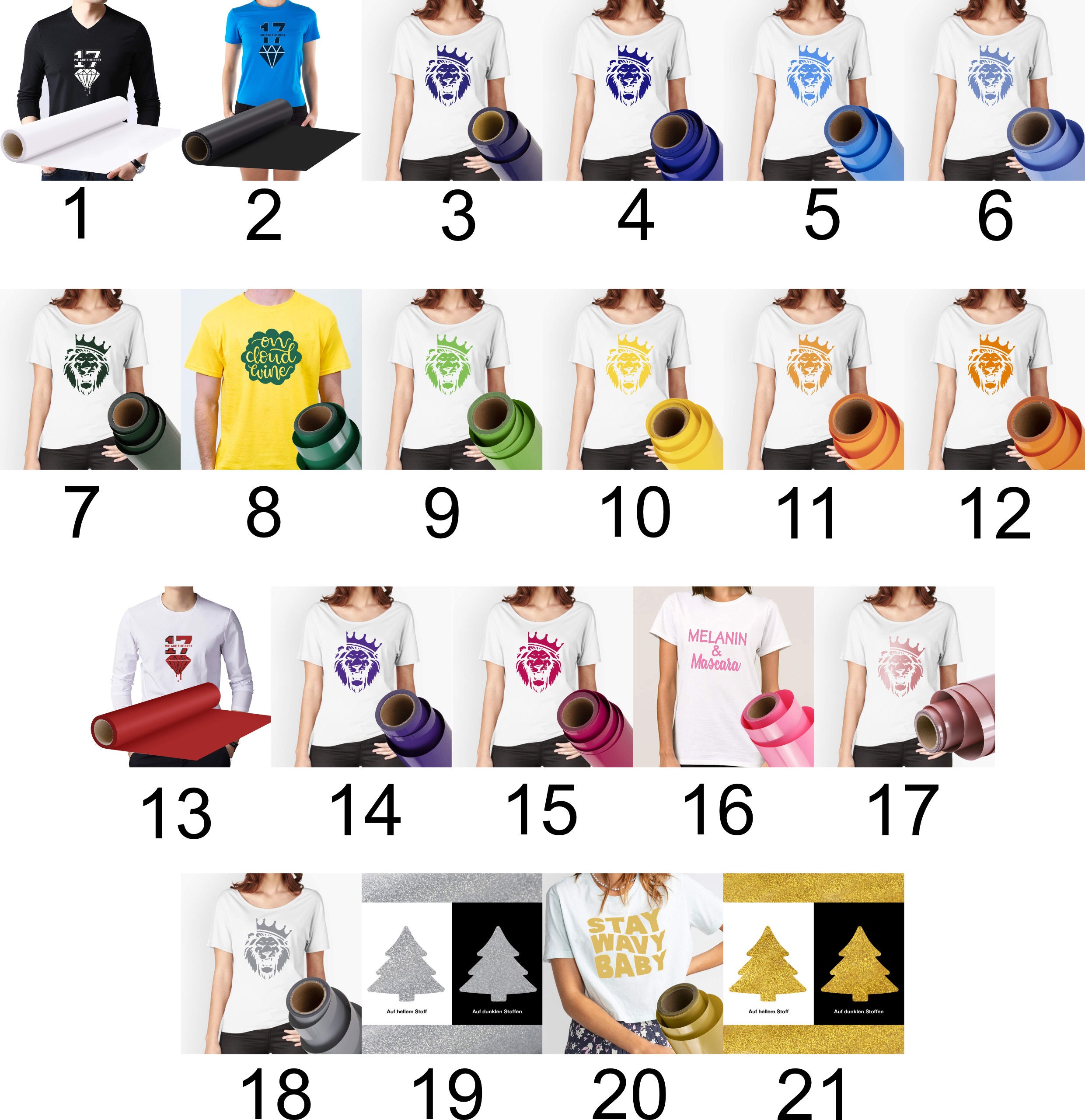 The iron-on images are made from a special film and are suitable for all fabrics that can be ironed (cotton, polyester, blended fabrics, etc.).