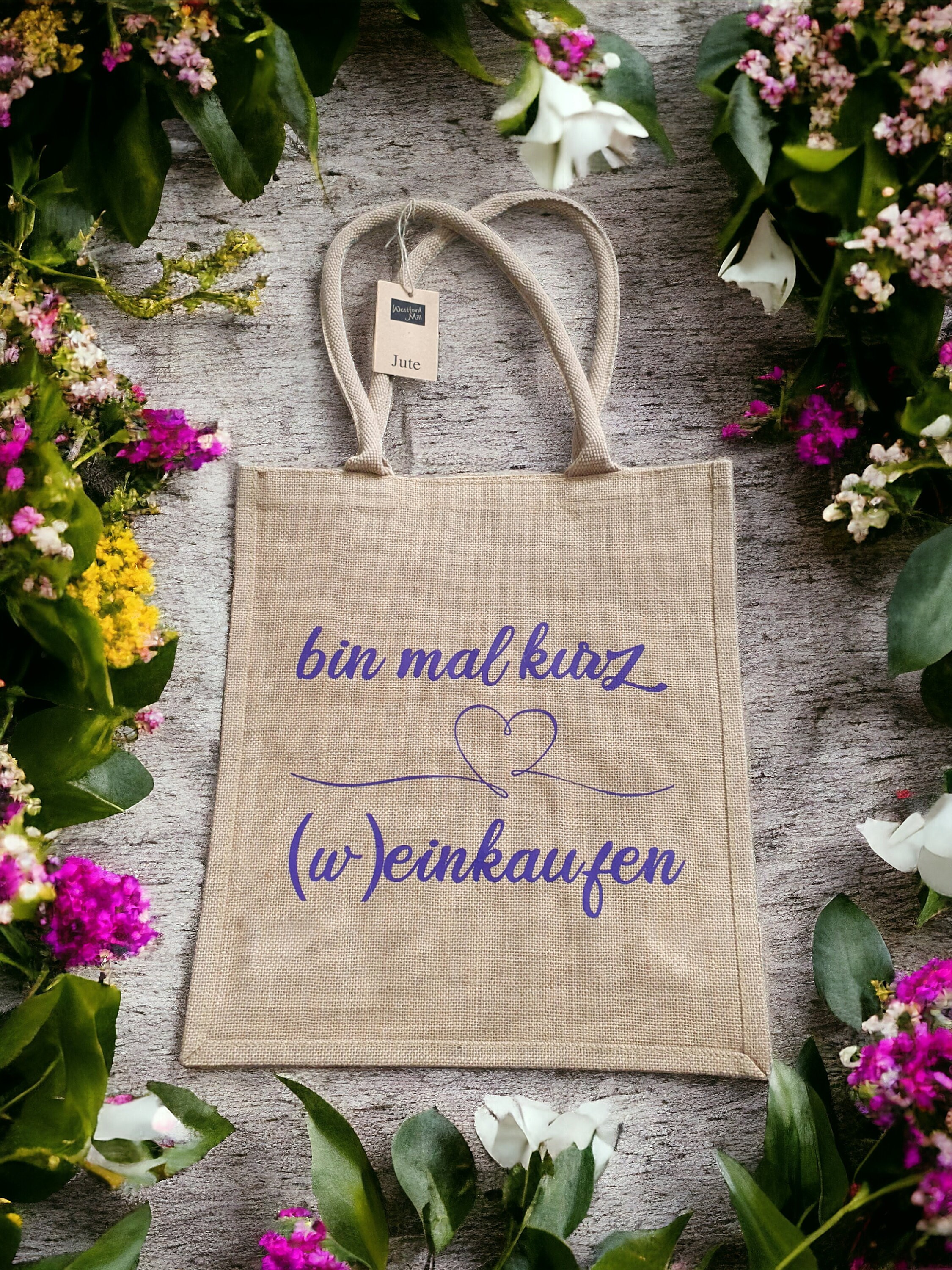 Custom print, jute, natural product - these are the characteristics of this chic bag. Print in different colors, different sizes available - everyone will find their perfect bag here.